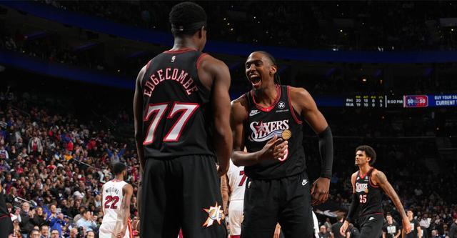 76人124-117小胜热火,马克西28+11,恩比德26+11,阿德巴约29分